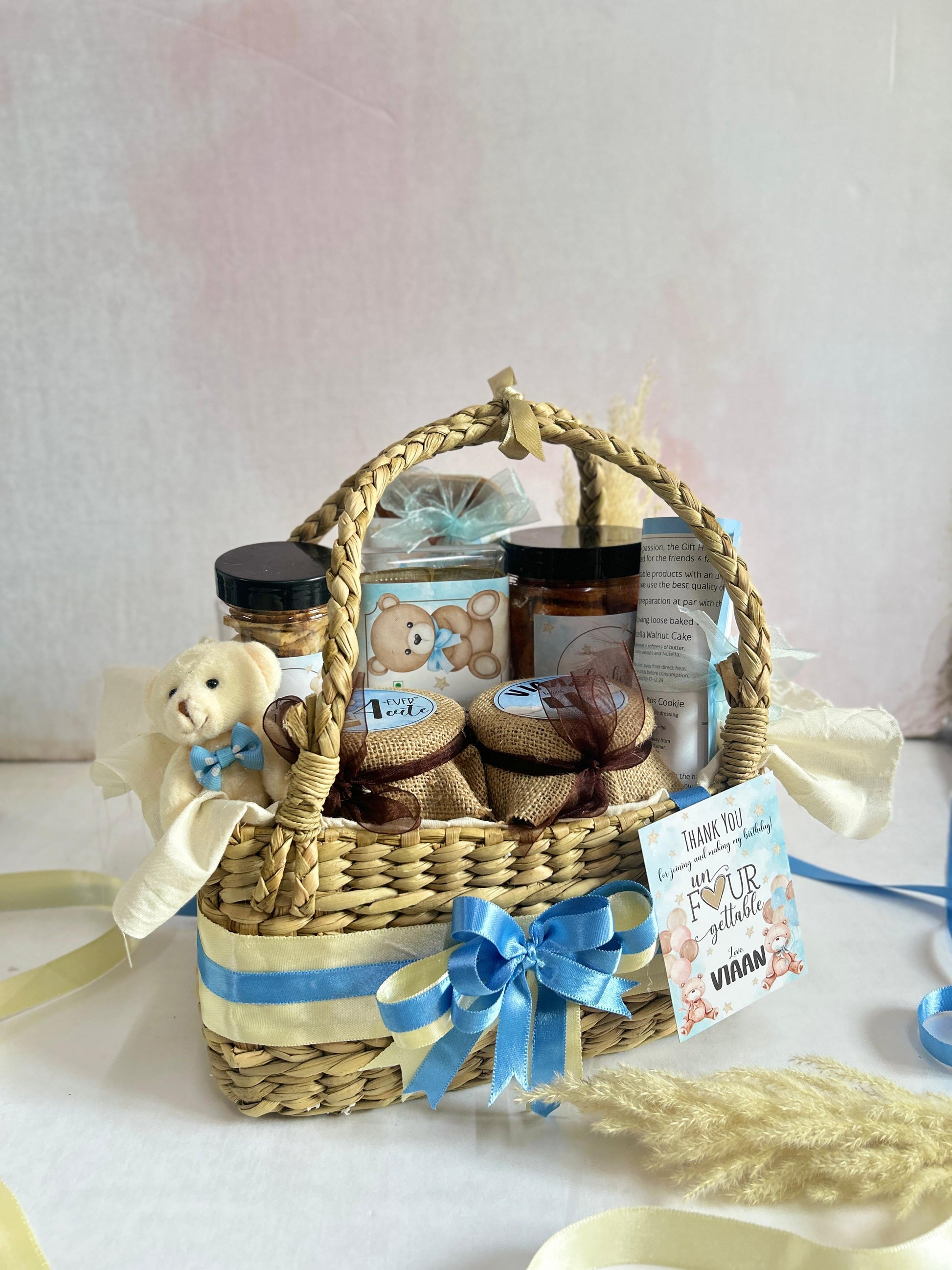 The Beary Cute Birthday Hamper is the perfect way to make your baby boy’s special day even more memorable! Featuring a charming teddy bear, delicious sweet treats, and delightful surprises, this hamper is crafted with love to bring smiles and cuddles. Personalize it to match your little one’s unique style and theme.