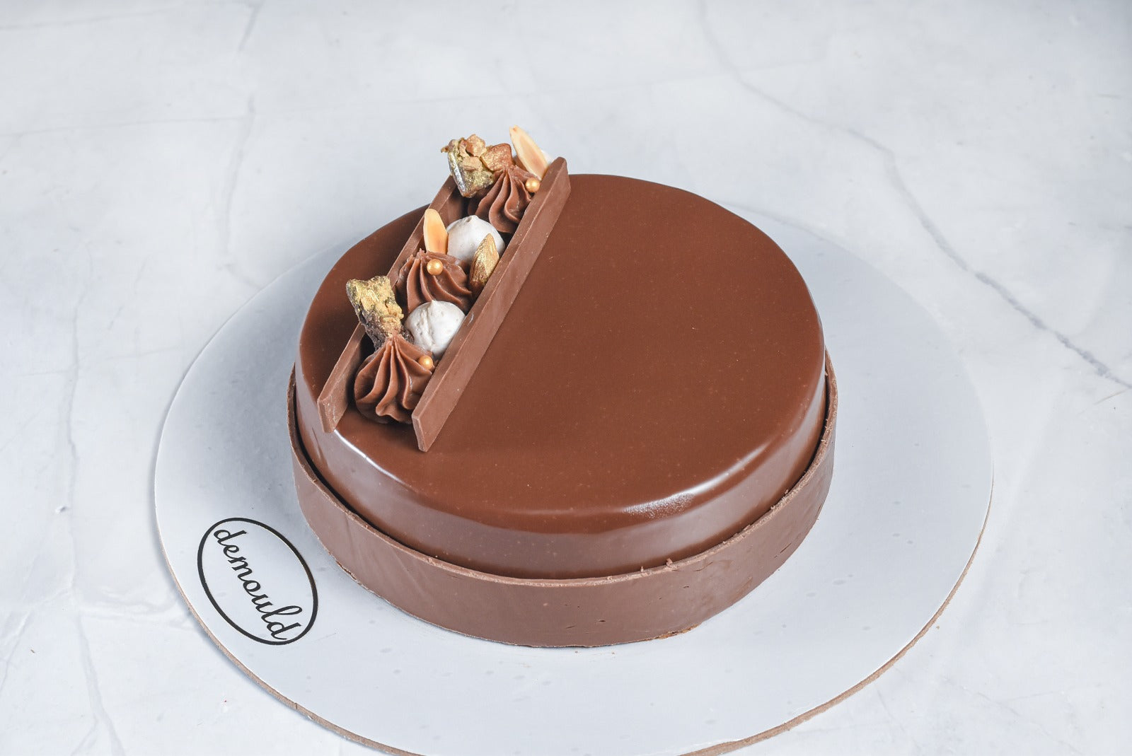 Our Silk Chocolate Almond Crunch Cake! Decadent layers of rich chocolate and crunchy almonds make it the best cake in Delhi! Order online from the best bakery in Delhi NCR