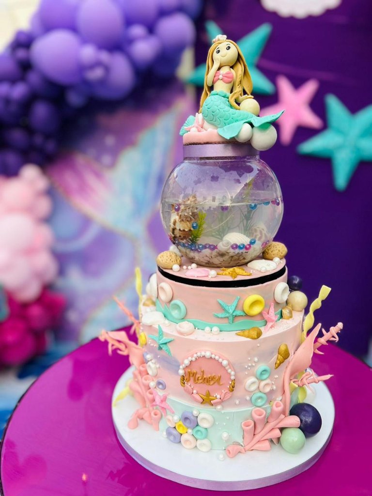 Transform your celebration into an enchanting undersea adventure with our Mermaid Theme Cake. Adorned with vibrant edible seashells, shimmering tails, and oceanic hues, this cake is as stunning as it is delicious.