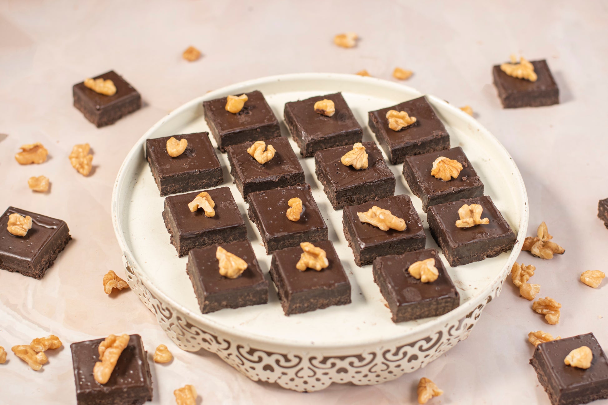 Walnut Chocolate Fudge - Indulge in the rich, fudgy goodness of our decadent Walnut Chocolate Fudge, a delightful blend of moist chocolate cake, creamy walnut filling, and a smooth chocolate glaze. Order online from Demould, the best bakery in Delhi-NCR, and experience the perfect fusion of flavors and textures.